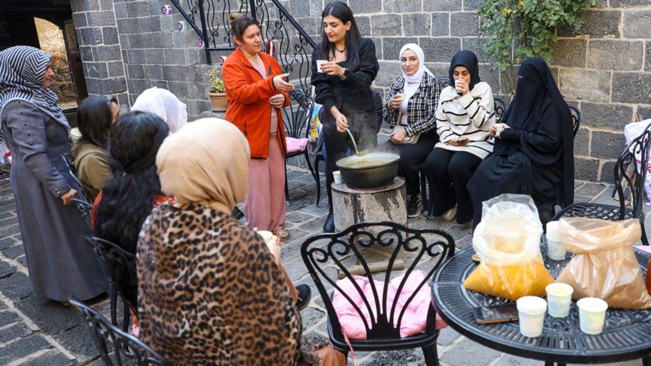 Atölyenin en çok ilgi gören bölümü ise uygulama kısmı oldu. Kadın yaşam merkezinin avlusunda yakılan ateş üzerinde büyük bir kazanda süt kaynatılarak, tariflerde sıklıkla kullanılan baharatlarla doğal ve besleyici bir karışım hazırlandı. Tarçın, zencefil, zerdeçal ve balın birleşimiyle ortaya çıkan bu geleneksel içecek, hem lezzeti hem de şifa potansiyeliyle katılımcıların beğenisini aldı.