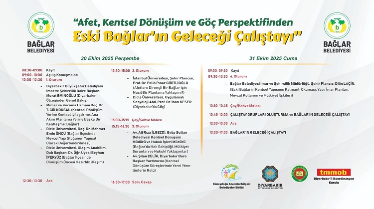"Afet, Kentsel Dönüşüm ve Göç Perspektifinden Eski Bağlar’ın Geleceği" başlığıyla gerçekleştirilecek olan bu geniş kapsamlı etkinlik, alanında uzman konukları bir araya getirecek.