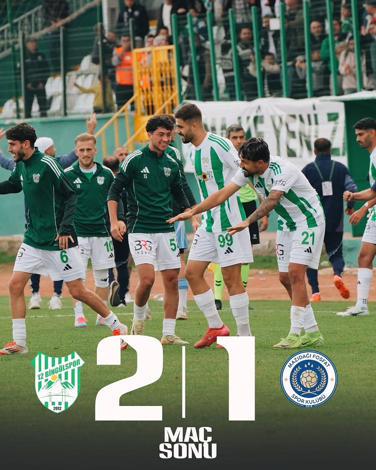 Ev sahibi takım olarak Mardin ekibi Mazıdağı Fosfat’ı konuk eden Bingölspor; sahadan 2/1’lik skorla galip gelmeyi başardı ve 4 hafta üst üste galibiyet serisi yakalamış oldu.