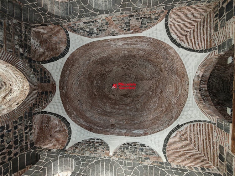 Uzmanlara göre, kubbenin merkezinden çevreye doğru spiral biçimde örülmüş tuğlalar, bir insanın başparmak izi formunu andırıyor. Restorasyon sonrası bu desenin daha belirgin hale geldiğini belirten yetkililer, mimarın eserine imzasını bırakmak amacıyla bu düzenlemeyi bilinçli olarak yapmış olabileceğini söylüyor. Bazı araştırmacılar ise bu formun akustik güçlendirme amacıyla da tercih edilmiş olabileceğini dile getiriyor.