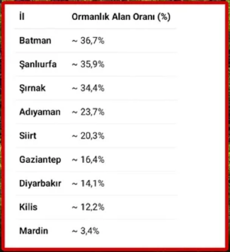 GÜNEYDOĞU İLLERİNDE ORMANLIK ALAN ORANLARI BELLİ OLDU