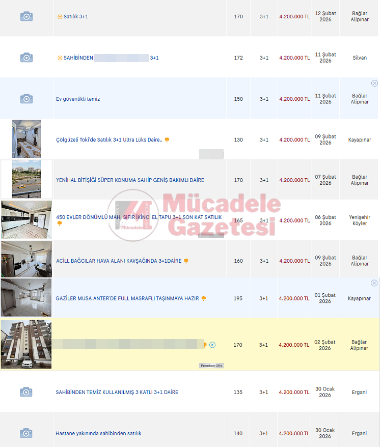Gayrimenkul piyasasında 2026 yılı verileri, hem yatırımcılar hem de ev sahibi olmak isteyenler için çarpıcı bir tabloyu ortaya koydu. Buna göre, illerin kendi içerisindeki fiyat ortalamaları alınarak yapılan sıralamada Diyarbakır dikkat çekti.