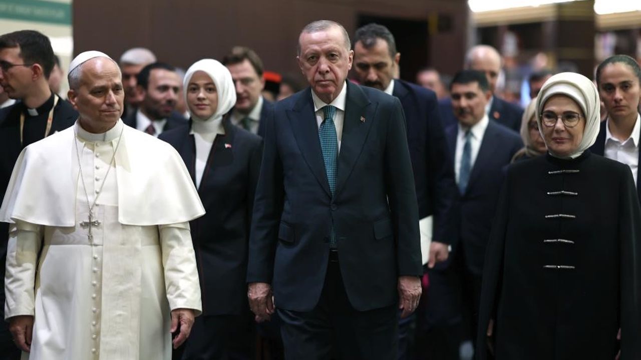 Cumhurbaşkanı Erdoğan, Vatikan Devlet Başkanı Papa 14. Leo ve heyetine dair hitap konuşmasında, "Biz her fırsatta vurguladığım gibi ilhamını çift başlı Selçuklu kartalından alan, yüzü ve yönü hem doğuya hem batıya dönük bir ülkeyiz. Bin yıldır vatanımız olan bu topraklarda her ırka, dine, mezhebe, kökene mensup insanlar hiçbir endişe, hiçbir baskı olmadan özgürce yaşamıştır. İstanbul'a, Hatay'a, Mardin'e, Diyarbakır'a, birçok şehrimize gittiğinizde camilerle birlikte kilise ve sinagogları yan yana görürsünüz" dedi.