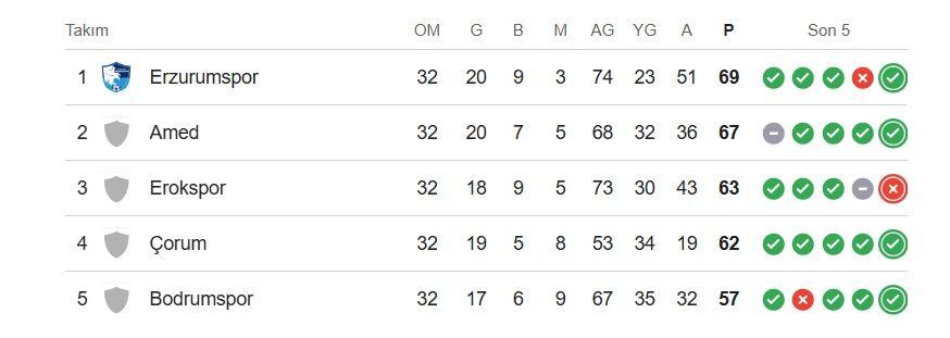 Öte yandan Hatayspor galibiyeti sonrası konuşan Amedspor Teknik Direktörü Mesut Bakkal, “Erzurumspor’un maçı kazanması bizim için daha iyi olacaktır” ifadelerini kullanmıştı.