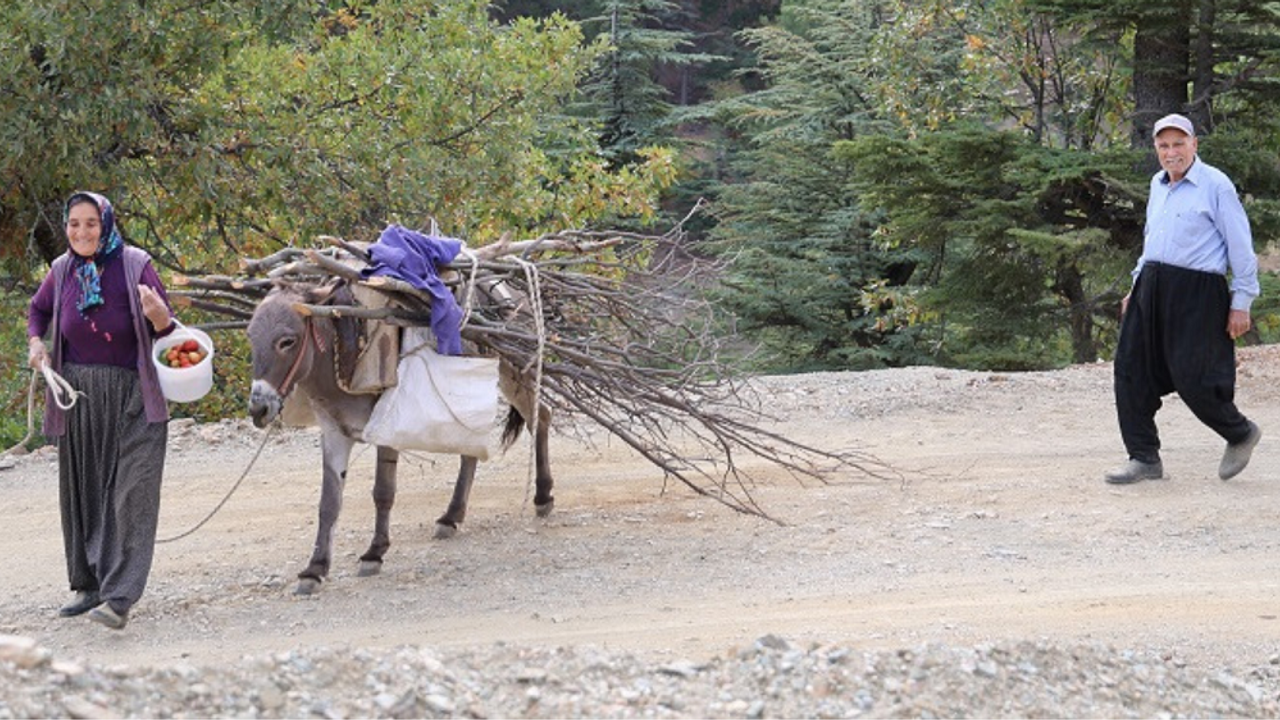 50 yıllık evli Hacı (77) ve Pakize Savur (67) çifti, kış öncesi hazırlıklar kapsamında yamaçlardaki bahçelerinden kuru dalları toplayarak geleneksel yöntemle eşek yardımıyla taşıyor. Çiftin zahmetli ama sade yaşam tarzı, modernleşen yaşama inat Toroslar'daki emeğin ve sadeliğin simgesi olarak öne çıkıyor.