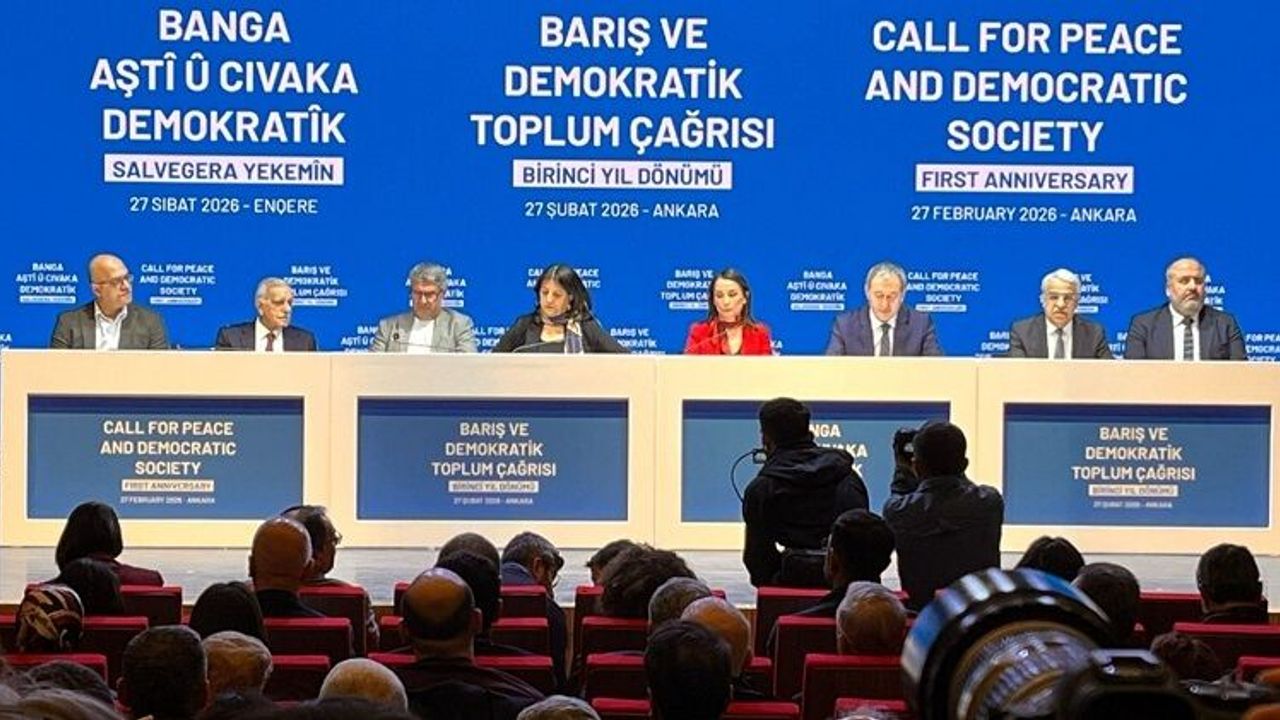 Halkların Eşitlik ve Demokrasi Partisi (DEM Parti), mesajla ilgili Ankara’da basın toplantısı düzenlendi. Abdullah Öcalan, PKK’nin silah bırakma ve fesih çağrısının yıl dönümü dolayısıyla yeni bir mesaj hazırladı. DEM Parti Eş Genel Başkanları Tülay Hatimoğulları ve Tuncer Bakırhan’ın konuşmalarının ardından İmralı metni hem Kürtçe hem Türkçe okundu.