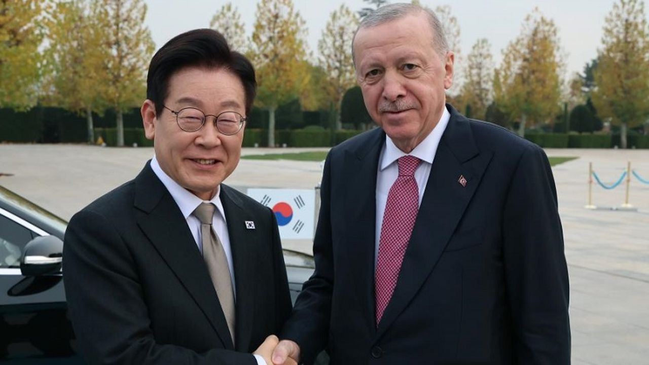Cumhurbaşkanı Recep Tayyip Erdoğan, Ankara’ya resmi ziyarette bulunan Güney Kore Devlet Başkanı Lee Jae Myung’ı Cumhurbaşkanlığı Külliyesi’nde resmi törenle karşıladı. Cumhurbaşkanı Erdoğan ve Myung’un ikili ve heyetler arası görüşmenin ardından Türkiye ile Güney Kore arasında enerji, savunma sanayii, teknoloji, ticaret ve nükleer enerji dahil çeşitli alanlarda 6 anlaşma imzalandı. "Nükleer Güç Santrali Projesi"nin de yer aldığı anlaşmaların imzalanmasının ardından Cumhurbaşkanı Recep Tayyip Erdoğan ile Güney Kore Devlet Başkanı Lee Jae Myung ortak basın toplantısı düzenledi. Erdoğan, iki ülke ilişkilerinin tarihsel temellerine ve Kore Savaşı’ndan bu yana süren kardeşlik hukukuna işaret ederek, ilişkilerin bu ziyaretle daha da pekiştiğini söyledi. Cumhurbaşkanı Erdoğan, ziyaretin Türkiye ile Güney Kore arasındaki güçlü bağların daha da pekiştirilmesine hizmet ettiğini belirterek, Kore halkının Türkiye’yi "kardeş ülke" olarak görmesinden duyduğu memnuniyeti dile getirdi. Kore Savaşı’nda omuz omuza verilen mücadeleyi hatırlatan Erdoğan, binlerce kilometre uzaktaki cepheye gönderilen Türk askerlerini anarak, "kan kardeşliği" vurgusu yaptı. Erdoğan, Güney Kore Devlet Başkanı Lee’nin yarın Ankara’daki Kore’de Savaşan Türkler Anıtı’na çelenk bırakacağını belirterek, bu duyarlılıkları için teşekkür etti. Türkiye ile Güney Kore arasında 1957’de kurulan diplomatik ilişkilerin 2012’de stratejik ortaklık seviyesine taşındığını belirten Erdoğan, 2027’de ikili ilişkilerin 70. yılının çeşitli etkinliklerle kutlanacağını ifade etti.
