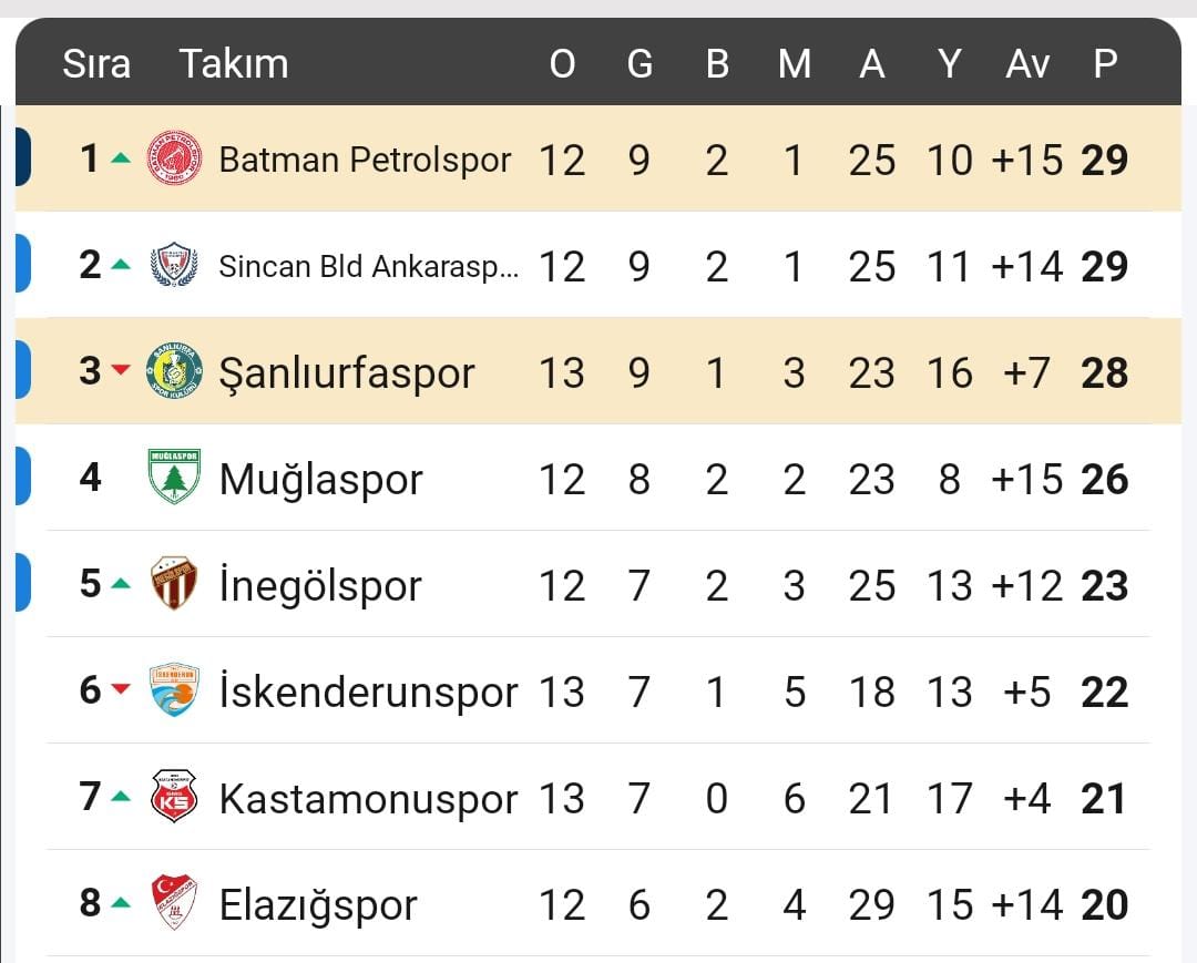 Bu sonuçla Petrolspor puanını 29 yaparak averajla liderliğe yükselirken, Şanlıurfaspor ise 28 puanla üçüncü sıraya geriledi.