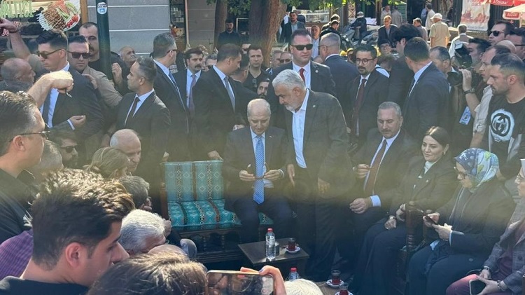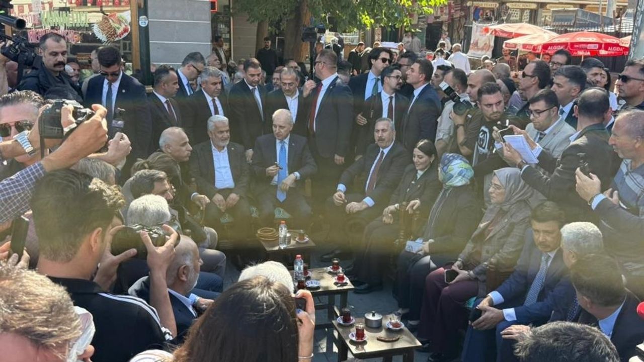 Vatandaşların çay ve simit ikramını geri çevirmeyen Kurtulmuş, onlarla birlikte çay içip simit yedi.