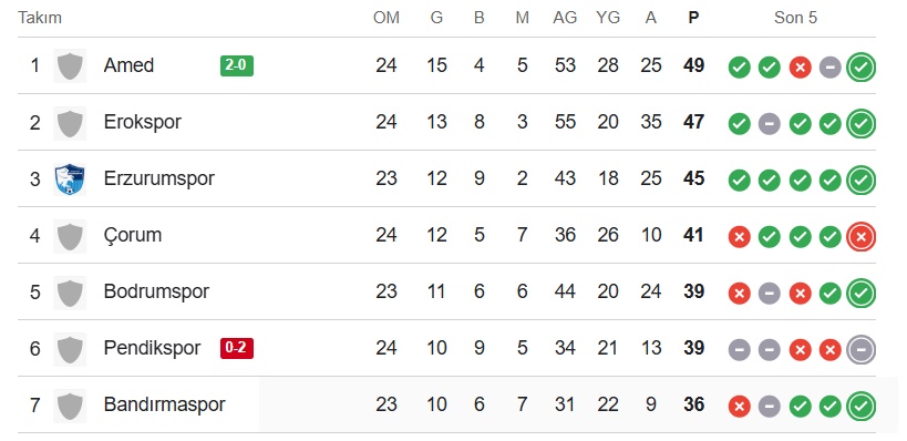 Amedspor, bu sonuçla puanını 49’a yükselterek liderliğini sürdürdü.