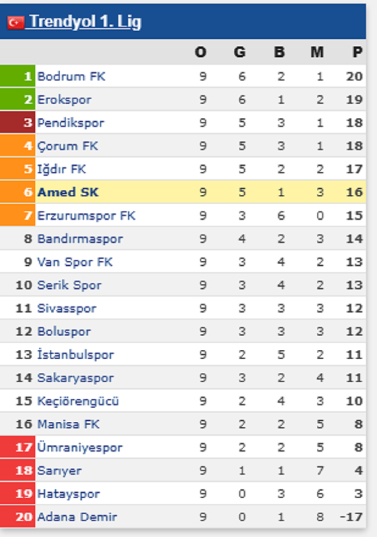 Diyarbakır ekibiyle Amedspor arasındaki puan farkı ligin 10.haftasına girilirken belli oldu. Buna göre, ligde liderliğini sürdüren ve Diyarbakırlı teknik direktör Burhan Eşer’in yönetimindeki Bodrumspor 20 puan ile 1.sırada yer alırken; 16 puan ile 6.sırada bulunan Amedspor 6.sırada yer alıyor.