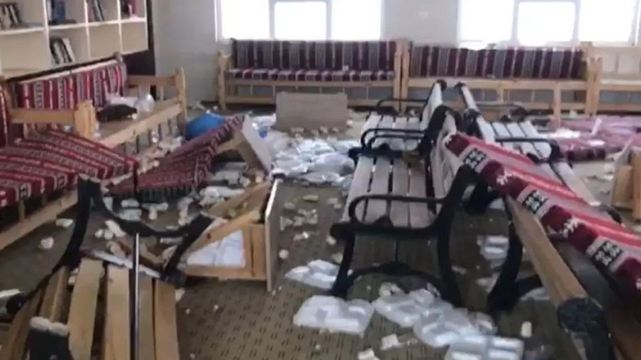 Taziye evinin camları, koltukları, mutfağı ve kullanılan malzemelerin tamamının parçalandığı görüldü.