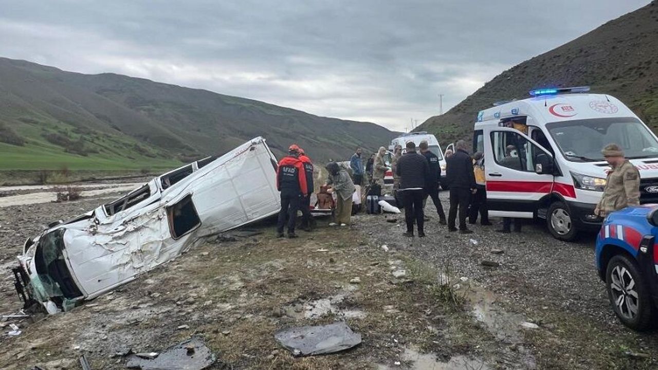Muş'ta yolcu minibüsünün dere yatağına yuvarlanması sonucu 16 kişi yaralandı.