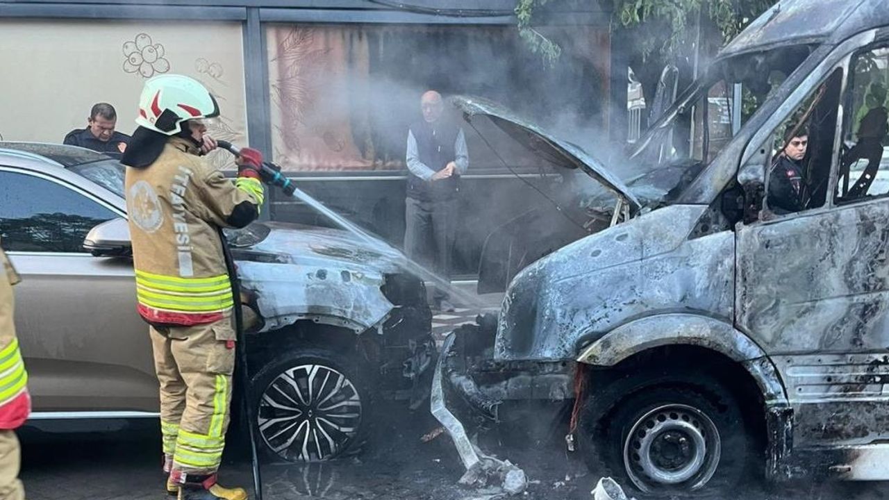 İtfaiye ekiplerinin müdahalesiyle yangın kontrol altına alınırken, midibüs ve yakınında park halinde bulunan bir otomobil yanarak kullanılamaz hale geldi.