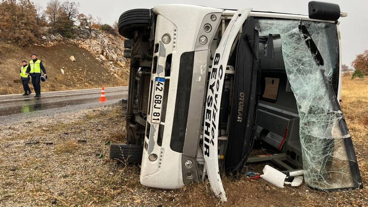 Kaza, sabah saat 07.30 sıralarında Beyşehir-Antalya kara yolu üzerinde meydana geldi. Edinilen bilgilere göre, Huğlu Mahallesi'nden ilçe merkezine öğrenci taşıyan Durmuş K. idaresindeki 50 EC 110 plakalı okul servisi, yağmur nedeniyle kayganlaşan yolda sürücüsünün kontrolünden çıkarak şarampole devrildi.
