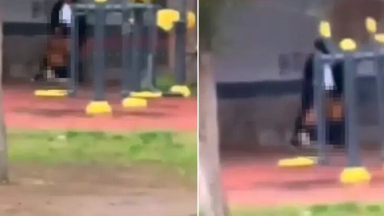 Görüntülerde çiftin, kamusal alanda uzun süre çevreyi dikkate almadan hareket ettiği görüldü. Parkta bulunan bazı vatandaşların duruma tepki gösterdi.