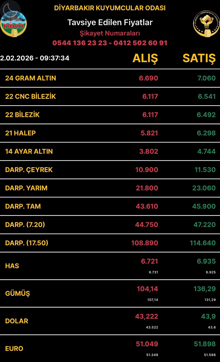 Diyarbakır Kuyumcular Odası (DİKO) altın fiyatlarını duyurdu. Buna göre, gram altın, çeyrek altın, yarım altın ve tam altın fiyatları belli oldu. Peki, altın piyasasındaki son durum ne oldu?
