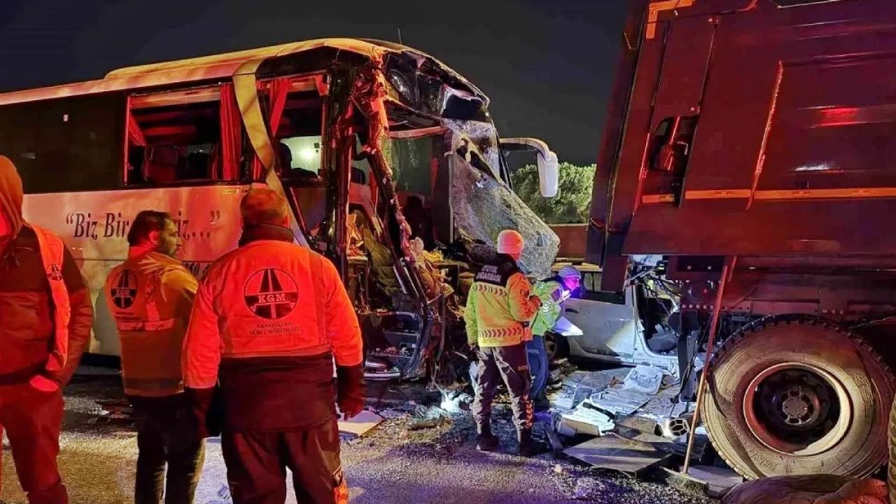 Yolcu otobüsü, hafriyat kamyonu ve 2 otomobilin karıştığı kazada 1 kişi yaşamını yitirdi. Kazada 3'ü ağır olmak üzere toplam 27 kişi yaralandı. Yaralılardan 3'ünün çocuk olduğu öğrenildi.
